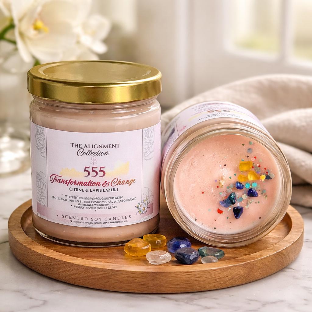 555 Transformation & Change | Energy Charged Crystals ~ Soy Candle